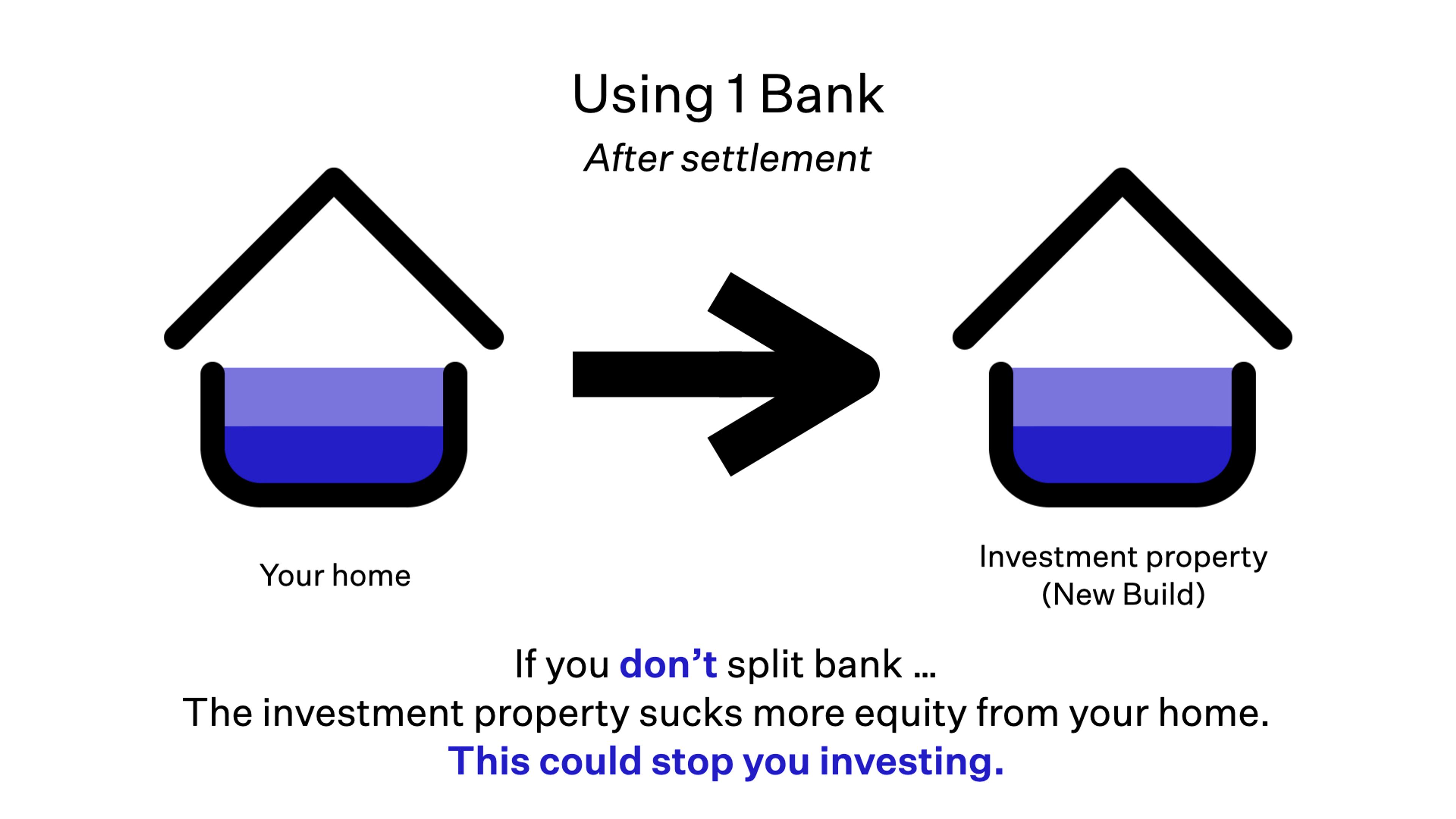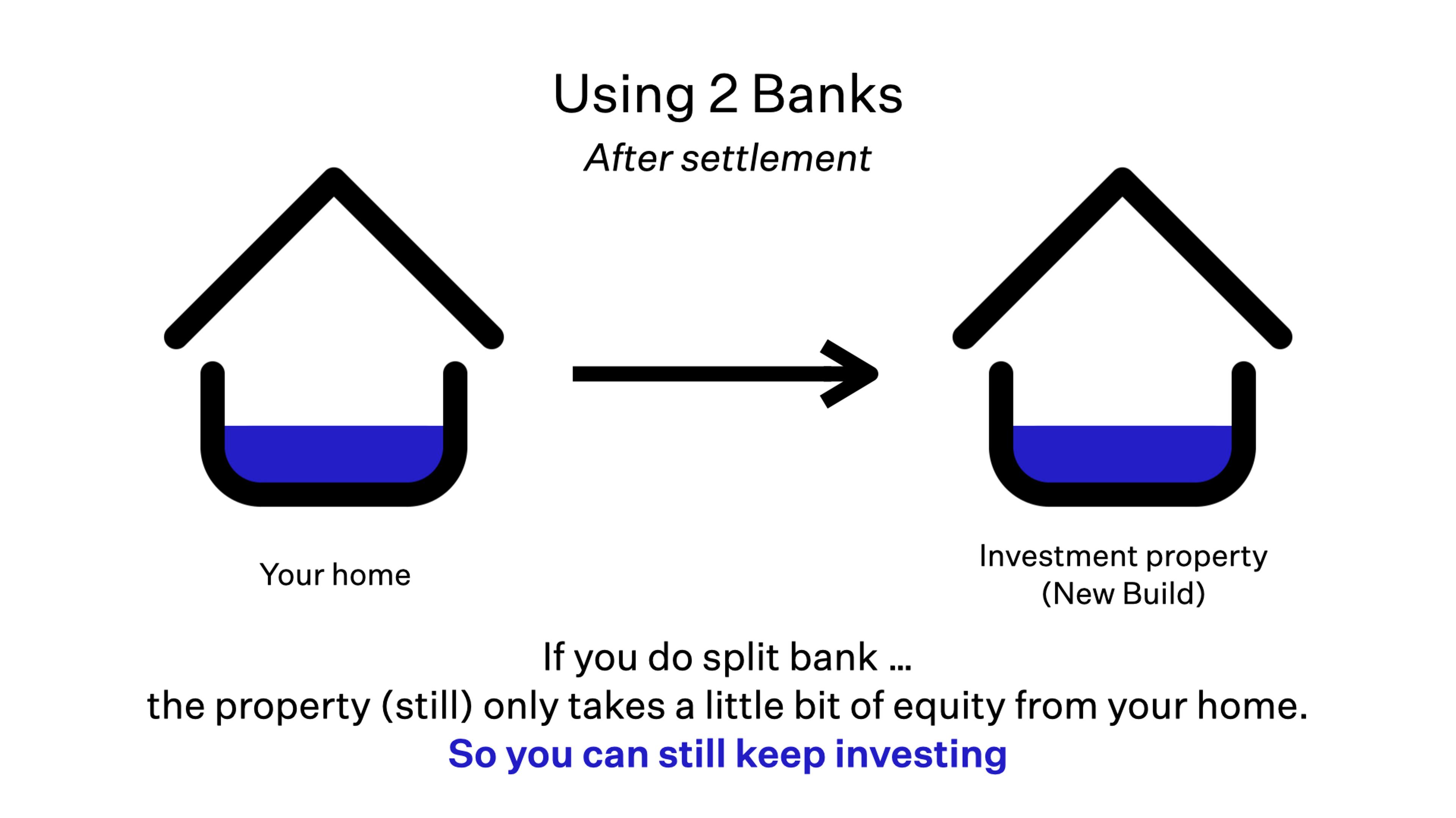 With two banks, you can set it up so that your New Build investment property still only takes a little bit of useable equity from your main home.
